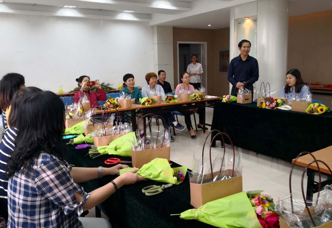 活动邀请了经验丰富的花艺老师向大家传授花艺知识、分享花的语言、展示插花艺术,并现场制作了自己的插花提篮,现场气氛十分热烈。经过两个多小时的精心制作,各式各样的花艺提篮令人耳目一新,或奔放、或含蓄、或艳丽、或清新,让节日的喜悦增加了许多绚烂的色彩。