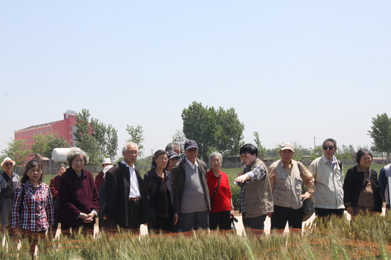 经过3个多小时的车程到了南皮站,张广录站长早已带领站上的同志在那里翘首迎候,春末夏初明媚阳光下的南皮站充满了欢声笑语。老同志们,在激情仰望新的实验办公大楼时,倾听了张站长如是致辞一样简短话语,张站长说:今天站的样子,是几代南皮人共同努力的结果,感谢各位老前辈对南皮站的付出……。随后,张站长带着老同志们参观了楼内设施、楼外实验场和示范麦田。在实验楼的中厅,老同志们站在李振声院士题写的“渤海粮仓”四个光灿灿的大字前,久久不愿离开,大家说,他高歌着南皮站,跃马策鞭,前程辉煌!