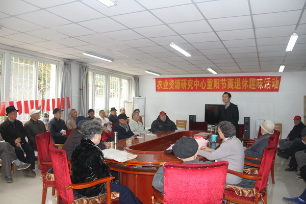 农历九月初九,是中国的传统节日重阳节。为弘扬敬老爱老的传统美德,关心照顾好离退休老同志的生活,10月27日上午,在重阳节来临之际,农业资源研究中心组织了重阳节离退休趣味活动,50多位老同志参加了活动,其中年龄最大的87岁。中心党委书记赵军也参加了活动。
