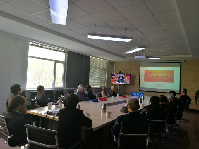 4月16日上午,农业资源研究中心组织部分离退休老干部收看了中国科学院离退休干部局举办的离退休干部外交形势视频报告会,中心离退休党支部书记、委员、老干部代表等近20人参加了会议。
