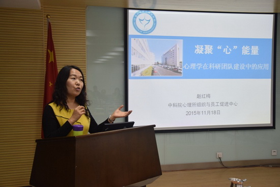 讲座中,杨中波处长从中科院现有人才队伍的情况出发,对国家重大人才计划和院级人才系统工程进行了全面讲解,并对申报过程进行了指导和答疑。最后他鼓励中心根据自身的发展战略,积极申报各类人才项目,并希望对已有的项目加强过程管理。随后,心理所赵红梅老师以凝聚“心”能量为题,结合自身经历和科研团队中容易面临的现实问题,帮助大家将心理学应用到团队建设中,为高效和谐的团队建设注入了推动剂和润滑剂。