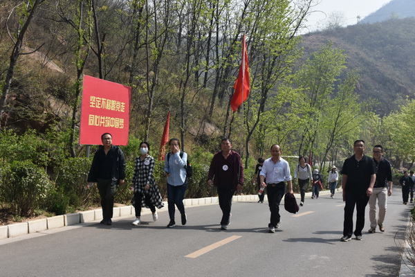恰是早春三月时候,大地一片生机盎然。红崖谷内桃红柳绿、草长莺飞。以中心四个在职党支部为单元、组队开展的“健步走竞赛活动”拉开了帷幕。大家意气风发、阔步向前,既你追我赶、又携手同行。在中心旗帜的引领下,全体会员身着轻装,快步行进。一路上,高山峻岭尽收眼底,绿草花香迎面拂来,大家一边感受着大自然的美好风光,欣赏着大自然给予我们如画的美景,享受着大自然带给我们的清新空气,一边体味着团队成员互帮互助与心悦兴奋的休闲时光。健步走队伍从入口到五郎庙,一路攀山前行,一路笑语欢声。最终,由机关党支部组成的参赛队伍获得“健步竞赛”一等奖。活动期间,中心党员和部分工会会员还参观了红色教育基地——红崖谷西柏坡精神体验基地,实地见学平山红色历史,认真回顾党的艰辛奋斗历程,激发了大家的奋斗热情。