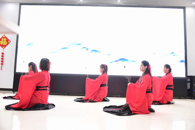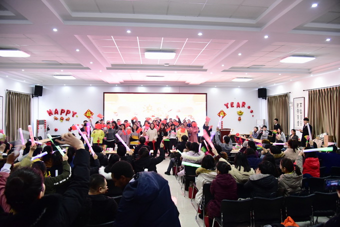 联欢会由王丽琨、孟得媛、要家威、杜明硕四位师生组成,青春靓丽的主持人一亮相就得到了满堂掌声。他们用或热情洋溢,或诙谐幽默的串场词为整场联欢会增光添彩,现场气氛热烈。开始一首合唱《我和我的祖国》点燃了大家的热情,大家都跟着音乐一起合唱,唱出对祖国的热爱与祝福。紧接着的配乐诗歌朗诵《新年你好》更是给大家带来了新年的祝福。歌曲《小幸运》更是掀起了一阵高潮,大家挥舞荧光棒,享受这欢聚一堂的幸运。联欢会中为观众带来欢乐最多的要属相声《我太难了》和小品《毕业论文离奇事件》幽默风趣的语言、诙谐逗趣的表现,让现场的观众掌声笑声不断。留学生的节目也很是出彩,他们的歌曲串烧英文歌曲《queen of my heart》和中文歌《因为刚好遇见你》让我们看到留学生的风采,想必他们在我们中心也体会到家一样的温暖。此外歌曲《天天向上》、《我和2035有个约》、《我们都是追梦人》都展现了青年一代的责任和抱负,展现祖国的未来由我们来创造的决心。配乐诗朗诵《相信未来》和《祖国,我亲爱的祖国》表达了对未来的期望和对祖国的热爱。学生舞蹈《礼仪之邦》将中国传统礼仪运用舞蹈的展现形式展现出来,不仅给我们带来了美的体验更是让我们了解了中国的传统礼仪文化。由中心妇委会带来的蒙古舞《可能否》更是展现了中心职工和学生不一样的风采。精彩的武术表演《武动青春》与诙谐的表演相结合,燃爆全场,让观众体验到传统武术的那份魅力。此次联欢会还设有两个游戏环节,现场观众积极参加,配合默契,体会到游戏的乐趣。