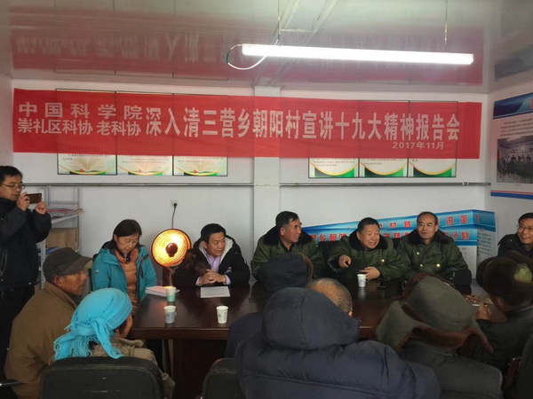 河北省张家口市崇礼区清三营乡朝阳村,地处坝缘冷凉山区,是当地有名的精准扶贫“重点村”。11月23日,中心宣讲团成员、离退休一支部书记王占升研究员和中心宣讲团成员、原书记田魁祥研究员,驱车近9个小时专程赶赴那里,为清三营乡党委、朝阳村两委、科技示范户代表等40余人宣讲党的十九大精神。中心宣讲团成员结合自己学习党的十九大精神体会,和为崇礼区、朝阳村作的两个科技扶贫规划,宣讲了党的十九大报告指明的三农时代特征,新时代的农业、农村和农民未来的发展方向和宏伟目标,并就政府主导、农民主体和科技支撑等问题和与会人员进行了研讨与交流。他们表示,在扶贫工作中,应紧紧扣住当地的自然环境及气候特点,抓住京津冀一体化和2022年北京冬奥会的战略发展机遇,以典型的京津冀生态保护区和水资源支撑区为主线,发展高效冷凉大农业,在绿色、错季农业、养殖业方面做大做强,以实际行动学习贯彻党的十九大精神,早日实现脱贫目标。