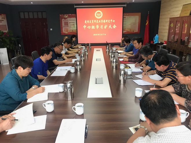 为学习贯彻党的十九大精神,深入学习领会习近平总书记关于坚持党对一切工作的领导的重要思想,活学活用马克思主义,5月17日上午,农业资源研究中心(以下简称“中心”)党委理论学习中心组召开2018年第4次(扩大)会议。会议由中心党委书记赵军主持,中心领导、党委委员、管理部门负责人和支部书记等参加了学习。