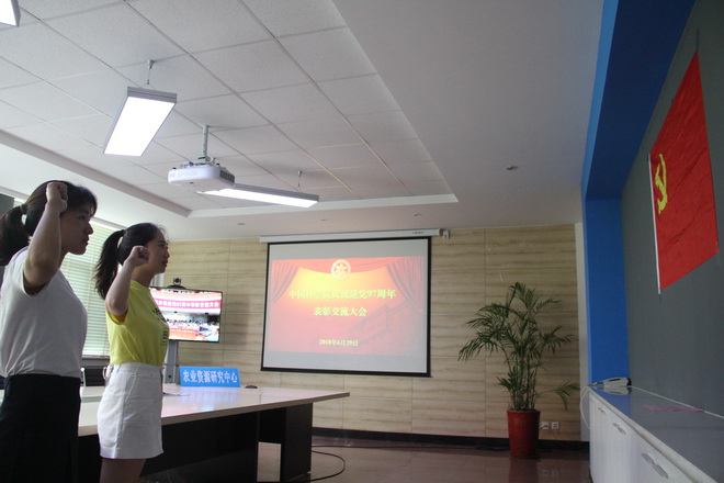 为庆祝建党97周年,回顾党的光辉历史,深入学习习近平新时代中国特色社会主义思想和党的十九大精神,6月29日上午,中国科学院在京隆重举行庆祝建党97周年表彰交流大会。农业资源研究中心以视频会议形式参会,中心领导、党支部书记、新党员代表等参加大会。