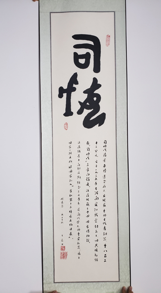此外,国庆前夕,中心老同志们还积极参与了第五协作交流组举办的书法绘画展。书法绘画展紧紧围绕“重温党的历史”、“决胜全面小康、决战脱贫攻坚”等主题,感受时代发展巨变,感怀中华民族从站起来、富起来到强起来的伟大历史飞跃,通过一幅幅饱含深情的书画作品传颂中国故事、中国共产党故事、新时代中国特色社会主义故事,为全面建成小康社会加油鼓劲、助力添彩。活动中,中心离退休老同志王容老师的书法作品《司母戊》(金文)和马三多老师的绘画作品《春色满神州》作为优秀作品进行了线上展览。老同志们纷纷为他们点赞!(供稿:李存桢)