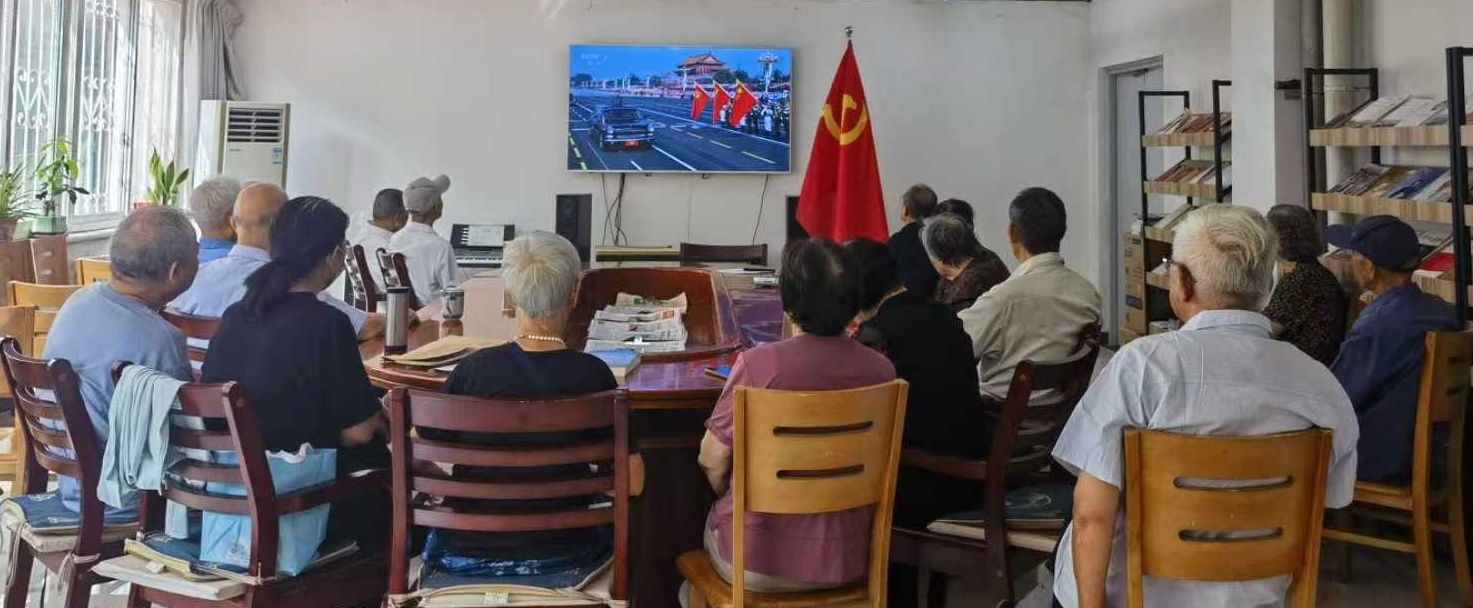 上午九点,老党员们齐聚党员活动室,神情专注而激动地观看了阅兵仪式。当国歌《义勇军进行曲》奏响,全体人员肃立注目;当受阅部队以严整军容、昂扬姿态阔步前行,装甲战车整齐列阵、气势磅礴驶过天安门广场时,在场人员无不为之震撼,深切感受到国家的强大与民族的自豪。阅兵式结束后,老党员心情仍然不能平静,纷纷表达自己的感受,纷纷表示,为祖国服务是老同志们一生的信念和追求,祝愿伟大祖国国泰民安、繁荣昌盛!