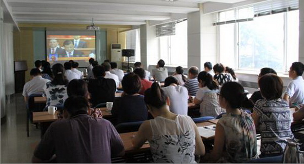 7月1日上午,庆祝中国共产党成立95周年大会在北京人民大会堂隆重举行,中科院遗传发育所农业资源研究中心组织全体在职职工和研究生党员在科研楼5楼会议室集中收看、离退休职工党员在家自行收看了实况直播。中心党委书记赵军,中心党委委员杨永辉副主任、刘小京副主任、刘孟雨研究员、刘西岗研究员与中心职工党员和研究生党员一同收看。中心主任胡春胜也全程收看了直播。