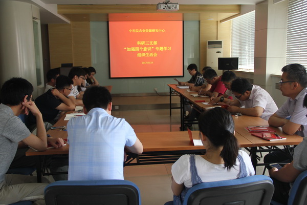 5月19日上午,农业资源研究中心科研三党支部召开了加强“四个意识”专题组织生活会,并围绕增强“四个意识”开展了集中学习。会议由科研三党支部书记安调过同志主持。