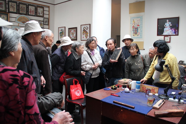 下午,大家参观了武强年画博物馆。该馆坐落在武强县城,是全国第一家年画专题博物馆。在导游详尽而又生动的讲解中,老同志们畅游于农耕文化的艺术世界之中,深深被其浓郁的民间艺术气息和独特的民间艺术魅力所吸引。通过参观,大家了解了武强年画的历史渊源、传统风格、制作工艺等,还饶有情趣地在仿古年画作坊中观看了年画师傅制作年画的过程。