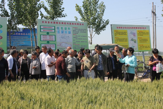 5月23日,由中国科学院遗传发育所农业资源研究中心承担的河北省渤海粮仓科技示范工程成果转化项目“南皮县小麦玉米精准施肥关键技术示范”和国家科技支撑计划项目渤海粮仓示范工程专题“小麦玉米浅层微咸水补灌吨粮技术集成研究与示范” 联合在“渤海粮仓”核心示范区南皮县乌马营镇东五拨村举办了“作物氮素实时诊断与精准施肥关键技术”与“作物病虫害防治技术”现场观摩与技术培训会。农业资源研究中心张玉铭副研究员和李红军副研究员、南皮县农业局植保站站长张满义研究员、南皮县神兵植保专业合作社和绿丰谷物种植专业合作社负责人、种植大户、农民代表等40余人参加了会议。会议由张满义站长主持。