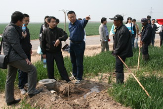针对当下麦田管理中的问题,李俊明研究员和刘孟雨研究员分别就良种良法和节水技术与当地技术人员和农民进行了交流和技术指导。李俊明研究员与当地农业科技人员重点交流了良种培育和推广方面的问题;刘孟雨研究员则主要对当地的农田灌溉和节水技术的研发与应用进行了交流和指导。