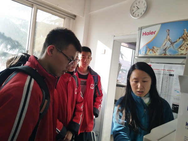 本次活动主要分为科普报告、实验室参观和试验站实地考察学习三部分内容。首先,以遗传学相关内容为主,农业资源研究中心植物遗传与育种研究室许红星副研究员以“小麦农家品种鸟麦抗白粉病新基因的遗传分析和分子鉴定”为题,深入浅出地为同学们讲述了小麦白粉病的成因、特征、分布及防治措施;面对小麦白粉病,国内外专家做了哪些工作。郭琳副研究员和宋利强老师先后带领同学们参观了植物分子与发育生物学实验室和小麦遗传育种实验室,认真讲解了实验室中的仪器设备、药品存放、实验流程和温、湿度对生物生长的影响等基础试验知识。同学们听得津津有味,看得专心致志,遇到自己感兴趣的问题就积极向老师发问。老师们不仅用通俗易懂的语言一一解答了同学们的问题,还与他们分享了自己在科学研究工作中的感悟,与同学们共勉,希望讲述的内容能够对同学们的学业有所帮助。现场气氛异常活跃,师生互动十分精彩。