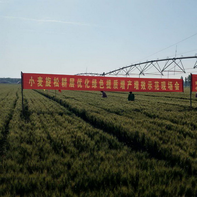 山东省德州市在20世纪80年代有大面积盐碱地,目前还有大面积中低产田有待改良,气候变化带来许多自然灾害风险,特别是干热风等;作为华北平原小麦-玉米主产区,该地区作物产量和资源利用效率有很大的提升潜力。针对华北平原耕层普遍变浅,资源利用效率降低;地下水超采、气候变暖、干旱加剧、病虫害等自然灾害危害风险增大,农业资源研究中心承担的国家重点研发计划粮丰工程专项黄淮海冬小麦产量与效率层次差异形成机制与丰产增效途径小麦生产系统对气候变化的响应机制及其适应性栽培途径”2个项目,于2019年至2020年,在山东省德州市陵城区示范推广了冬小麦旋松-夏玉米遁耕周年耕层优化绿色提质增产增效技术2000亩。该套创新耕作技术兼具前旋耕(25厘米)、后深松(40厘米)和镇压多项复合功能,具有不打乱土层,旋耕深松土壤,打破犁地层等优点,起到蓄水保墒,活化土壤营养,改良盐碱地等中低产田,建设高标准农田,减少灌溉和化肥农药施用量,提高资源利用效率等作用,目前已经在全国各地示范推广,后效持续,增产增效显著。特别是良种良法优化配套,种植超强筋优质小麦,可以扬华北平原强筋优质小麦之长,补干旱缺水之短,实现节水优质绿色增产增效协同发展。