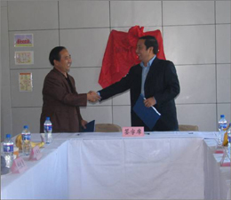 出席仪式的有石家庄市科技局副局长纪卫国,农业处处长刘国胜,高邑县副县长徐建军及县科技、农业、林业、开发等有关单位领导。中国科学院遗传与发育生物学研究所农业资源中心主任马七军和金色世纪农业工程有限公司总经理李富军共同签署了合作协议,并为“魔芋试验示范研究基地”剪彩揭牌。