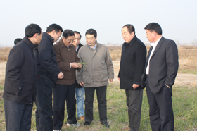 李院士在考察小偃81冬小麦示范田时,十分关心该品种在当地的表现。李院士指出,该品种具有抗逆丰产、晚播早熟、适应性广的特点。利用该品种的生物学特性,在保证冬小麦丰产的基础上,小麦为玉米让路,提早夏玉米播期,适当晚收,可实现冬小麦-夏玉米在不增加投入的条件下超吨粮,是今后保证我国粮食安全和农民增收的重要模式。李院士在示范区认真调查了不同播期小偃81冬小麦苗期生长情况,并叮嘱南皮站与南皮农业局的技术人员一定要做好观测调查,分类记载,掌握第一手资料,为小偃81冬小麦的示范工作做好技术指导。