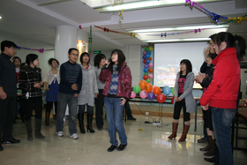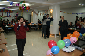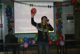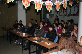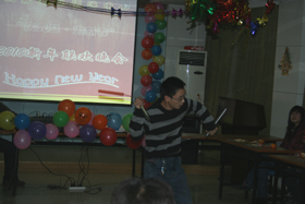 趣味丛生的游戏穿插于精彩节目之中,更活跃了现场的气氛。抽取幸运大奖的手机铃声吊足了大家的胃口。各位老师纷纷参加游戏、表演节目,与学生同娱同乐、共度佳节。中心副主任胡春胜研究员为晚会致闭幕辞,提出了新年的祝福与期望。迎新年联欢晚会在一片欢声笑语中画上了圆满的句号。
