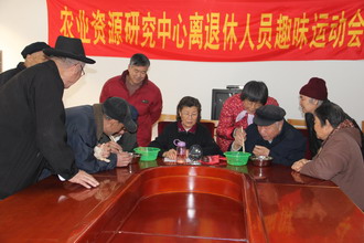 为了丰富离退休人员的文化生活,12月9日上午,在中心领导和离退休工作管理人员的共同努力下,我中心在新落成的离退休人员活动室举办了以 “快乐、友谊、健康、和谐” 为主题的离退休人员趣味运动会,有80多位老同志积极参与了此次活动,其中年龄最长者已达91岁高龄。