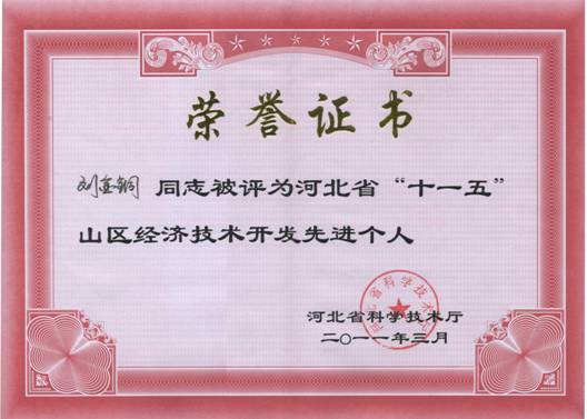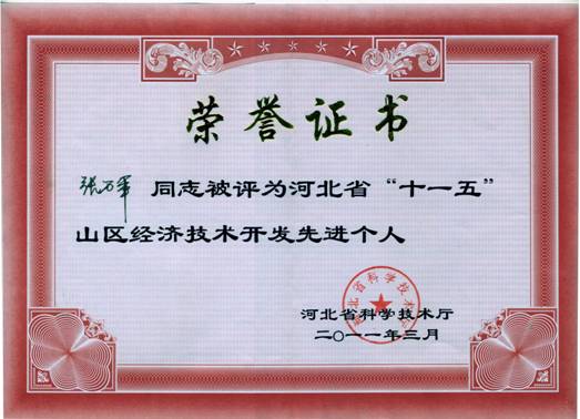 对以太行山为主的山区特色生态系统的研究一直是我中心重点研究内容之一,“十一五”期间,我中心在围绕山区防沙治沙、农牧区综合治理、矿区生态系统恢复、优质作物示范与推广等多个方面做出了不懈努力,曾先后四次获得了河北省山区创业奖,两次获得河北省科技进步奖,一次获得社会科学奖,为实现河北省山区特色创新、山区可持续发展等方面做出了重要贡献。为此,河北省科技厅特为我中心颁发了“河北省‘十一五’山区经济技术开发先进集体”荣誉证书,同时给予我中心刘金铜研究员、张万军研究员“河北省‘十一五’山区经济技术开发先进个人”称号,以资鼓励。