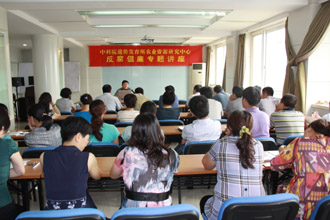 郭建军根据中纪委六次全会精神,以其多年来查处办理各类案件的切身体会,运用发生在我们身边大量真实的案例给我们作了一场深刻的反腐倡廉、预防职务犯罪的警示教育报告。报告以案说法说纪如同警钟长鸣,让党员干部引以为戒,时刻警示自己,进一步加强廉洁自律的意识;让科研人员严于律己,用好纳税人的每一分钱,加强党风廉政建设,从我做起,确保各项创新发展工作顺利推进并为创建和谐中心奠定良好的基础。