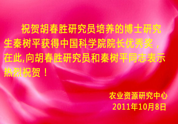 祝贺胡春胜研究员培养的博士研究生秦树平获得中国科学院院长优秀奖,