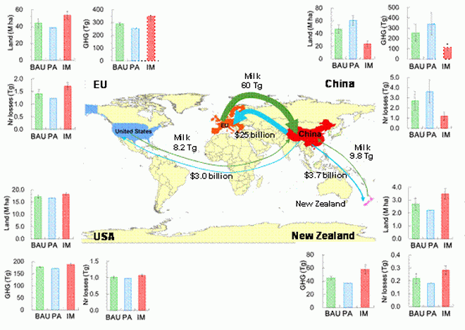 Zhaohai Bai, Michael R.F. Lee, Lin Ma*, Stewart Ledgard, Oene Oenema, Gerard L. Velthof, Wenqi Ma, Mengchu Guo, Zhanqing Zhao, Sha Wei, Shengli Li, Xia Liu, Petr Havlík, Jiafa Luo, Chunsheng Hu, Fusuo Zhang, Global environmental costs of China’s thirst for milk, Global Change Biology, 2018 DOI: http://doi.org/10.1111/gcb.14047