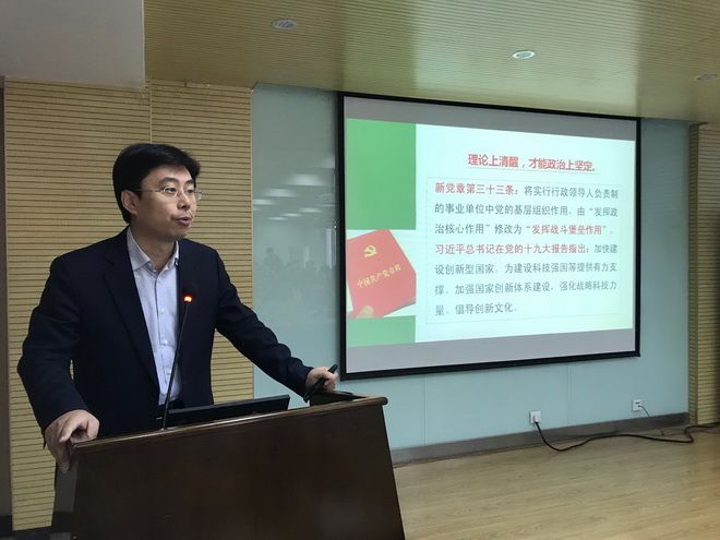 “只有理论上清醒,才能政治上坚定。中科院作为国家重要战略科技力量,如何按照新党章要求更好的发挥党组织战斗堡垒作用,为建设科技强国提供有力支撑,是我们在座每一名党员都应该认真学习思考的问题。”研究所党委书记胥伟华同志一语中的,开门见山的指出这场主题党课的重要意义。