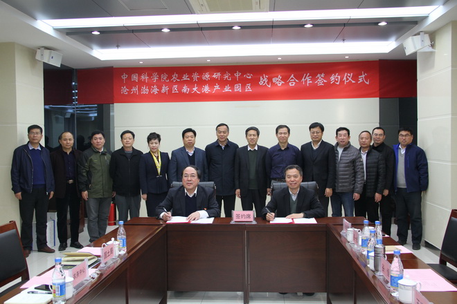为深化与地方科技合作,落实京津冀协同发展战略,发挥科技支撑农业绿色发展、乡村振兴、生态环境建设等方面科技作用,11月12日,中科院农业资源研究中心与沧州渤海新区南大港产业园区成功签署战略合作协议。根据协议,双方将在野外台站建设、湿地生态系统研究、湿地生态系统监测体系建设、湿地生态恢复和中重度盐碱地改良、高新技术成果产业化、农业科技人才培训等方面,展开多方位、多领域、多层次、高科技合作。沧州渤海新区党工委委员、南大港产业园区党委书记、管委会主任刘国林,区领导及南大港区相关部门负责人,中心主任胡春胜、党委书记赵军、副主任刘小京和中心各职能部门、台站负责人等参加签约仪式。