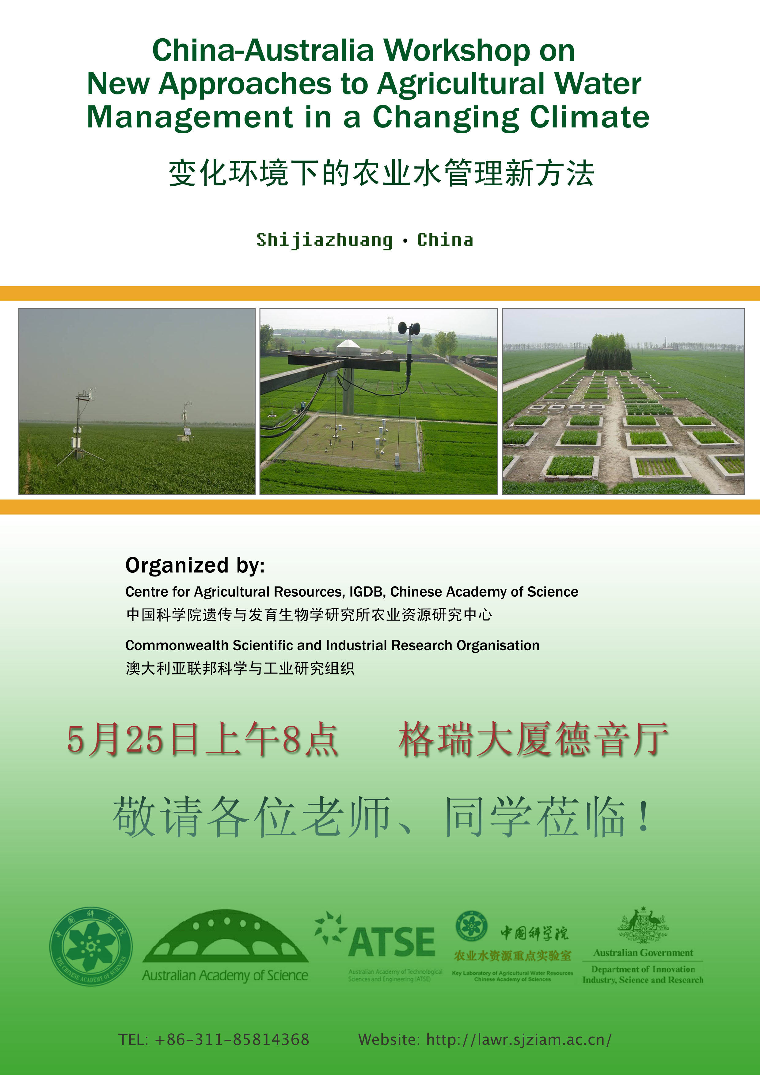 会议通知:中国科学院-澳大利亚双边研讨会:变化环境下的农业水管理新方法