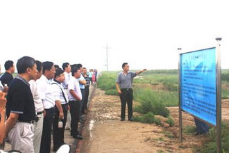 2010年8月19日,国家科技支撑课题“耐盐植物咸水安全直灌技术集成研究与示范”在河北海兴召开现场观摩会。来自海兴、黄骅、中捷、南大港、唐海等沿海县市的50多位代表参加。中国科学院资源与环境科学局庄绪亮处长、河北省科技厅逯国英副处长、沧州市科技局李建英副局长、海兴县人民政府毕延文副县长、中国科学院遗传与发育生物学研究所马七军副所长和胡春胜副主任等出席了现场观摩会。