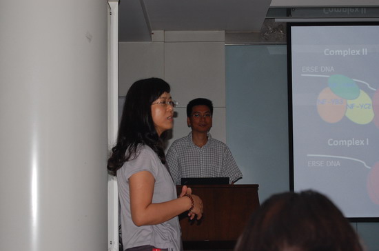 此次刘建祥教授的报告就是系统讲述了植物在应答外界刺激时,内质网蛋白错误折叠响应的转录因子bZIP28所介导信号通路的问题。内质网和高尔基体为植物蛋白翻译后修饰加工的场所,在蛋白质发挥生物功能中起着重要作用。刘建祥教授发现植物中类似动物的ATF6蛋白介导的非折叠蛋白反应信号通路,通过对70个bZIP家族进行分析发现bZIP28转录因子特异响应TM诱导变化,并且通过自身从内质网到高尔基体的运输,发生蛋白质剪切变化,产生有活性的功能蛋白,进入细胞核内诱导下游基因表达。