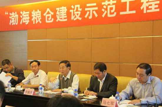 段子渊主任主持会议,指出这次会议目的是充分听取大家的意见、汇集大家的智慧,落实好渤海粮仓增产100亿斤的建设方案、实施方案与年度计划。随后,李振声院士作了重要讲话,指出渤海粮仓具有很大的增产潜力,加强渤海粮仓建设是我院的重要部署,要形成3+1(中科院、河北省、山东省与中粮企业)合作模式,重点解决好盐碱治理、水资源平衡、产品出路与队伍组织四大问题。