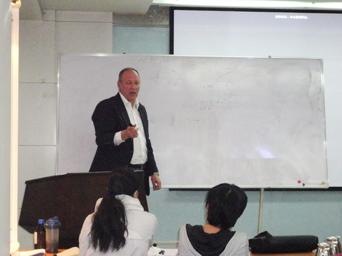 孙福宝博士主要从事气候变化、流域水热耦合平衡及水文气象方面的研究,他在“环境变化与农业资源高效利用”国际学术研讨会上做了题为“A new approach to evaluating precipitation projections”的报告,从我们熟悉的降水入手,探讨了降水随机性背后的数学统计规律及其所蕴含的物理机制,并以此为基础,对全球20个气候模型在澳大利亚Murray-Darling流域的降水预测范围及效果进行了评价。Michael Roderick是澳大利亚国立大学地球科学研究院和生物研究院的资深研究员,并担任水文学国际知名杂志Water Resources Research的副主编,主要进行从像元到全球尺度的水资源研究,他在大会上作了题为“Climate change, water availability and vegetation”的报告,介绍了他们已开展的工作和研究结果,与参会者进行了学术讨论与交流。