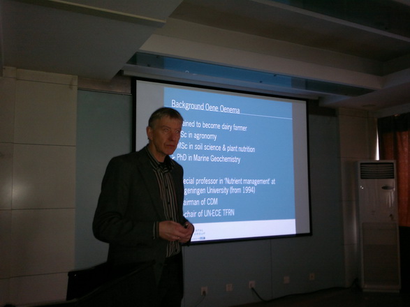 应胡春胜课题组邀请,荷兰瓦赫尼根大学Oene Oenema 教授作为本中心特聘外国研究员于2012年3月18日至4月12日来中心进行合作研究与学术交流,并于2012年4月11日做了题为“Globalization and nutrient use efficiency in food production – consumption chains”的精彩报告。报告首先介绍了当前全球化情况下粮食生产、畜牧业生产与世界各国粮食、畜产品的进出口状况,对养分从粮食生产、畜牧业生产到各类食品加工、消费等环节中的传输与利用效率进行了精辟的分析,对如何研究全球化情况下的养分利用效率问题提出了新见解。