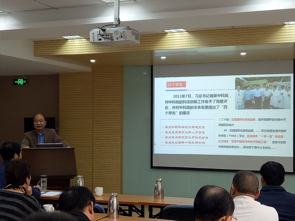 邱华盛作了题为“政产学研”“联手共建”“一带一路”的报告,报告详细介绍了中科院与非洲地区的合作情况,对“一带一路”新形势下的中非合作进行了分析,并建议农业资源研究中心进一步加强与非洲地区的合作,在国际合作工作中发挥自己的作用,将中心的研究成果应用到实际中,实现政产学研的有效连接。陈维平为大家介绍了“樱花科技计划”的由来、意义以及申报渠道等。张宗科介绍了中非联合中心地理遥感分中心进展情况及其重要意义,并对该中心未来的发展与大家进行了分享。报告结束后,各位报告人对大家感兴趣的问题一一作了解答。