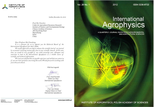 近日,农业资源研究中心胡春胜研究员受《International Agrophysics》杂志主编邀请担任该杂志编委,任期自2017年至2020年。