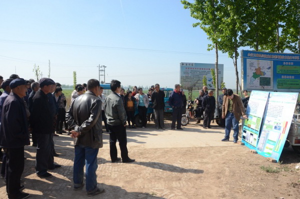 4月26日,农业资源研究中心联合南皮县农业局和科技局在“渤海粮仓”核心示范区乌马营镇东五拨村组织召开“基于数字图像分析技术的作物氮素实时诊断与推荐施肥技术”和“作物病虫害防治技术”现场观摩与技术培训会。农业资源研究中心相关课题科研人员,南皮县农业局、科技局有关负责同志,当地合作社成员、种植大户和农户等50余人参加了培训会。会议由南皮县农业局植保站站长张满意主持。