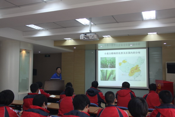 本次活动主要分为科普报告、实验室参观和试验站实地考察学习三部分内容。首先,以遗传学相关内容为主,农业资源研究中心植物遗传与育种研究室许红星副研究员以“小麦农家品种鸟麦抗白粉病新基因的遗传分析和分子鉴定”为题,深入浅出地为同学们讲述了小麦白粉病的成因、特征、分布及防治措施;面对小麦白粉病,国内外专家做了哪些工作。郭琳副研究员和宋利强老师先后带领同学们参观了植物分子与发育生物学实验室和小麦遗传育种实验室,认真讲解了实验室中的仪器设备、药品存放、实验流程和温、湿度对生物生长的影响等基础试验知识。同学们听得津津有味,看得专心致志,遇到自己感兴趣的问题就积极向老师发问。老师们不仅用通俗易懂的语言一一解答了同学们的问题,还与他们分享了自己在科学研究工作中的感悟,与同学们共勉,希望讲述的内容能够对同学们的学业有所帮助。现场气氛异常活跃,师生互动十分精彩。