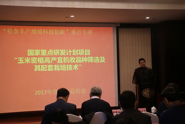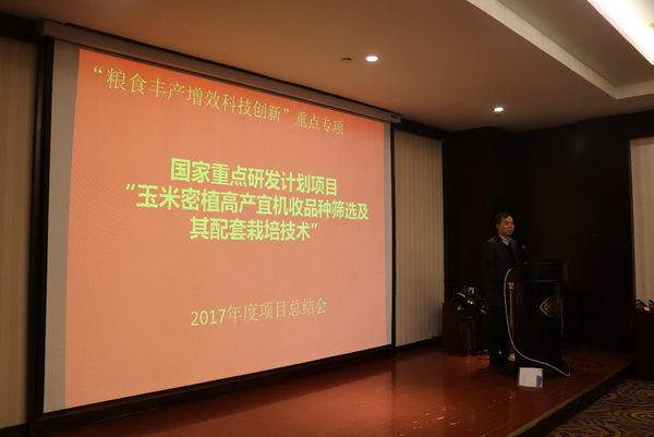 2月1日到3日,由农业资源研究中心承办的十三五国家重点研发计划“玉米密植高产宜机收品种筛选及其配套栽培技术”项目2017年度总结会在河北石家庄召开。农业部科技发展中心鞠辉明项目专员,农业资源研究中心主任胡春胜研究员、副主任刘小京研究员,项目咨询专家河北农业大学崔彦宏教授应邀出席会议,项目首席专家、中国农业大学王璞教授及33个参与单位的100余名研究人员参加了会议。