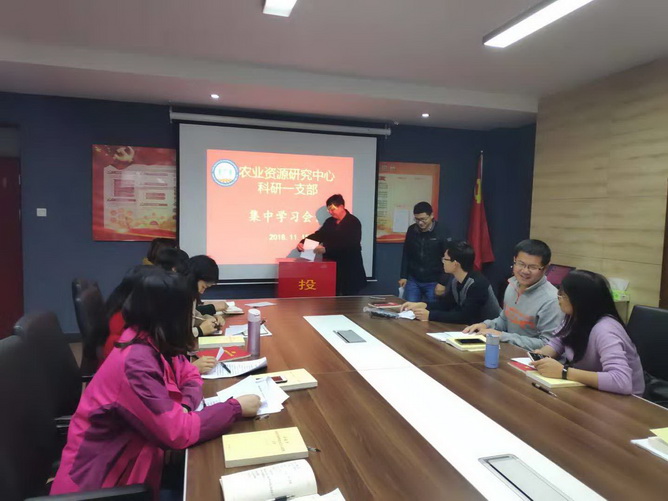 为深入学习贯彻党的十九大精神,深入学习领会习近平新时代中国特色社会主义思想体系,引导党员在科技创新领域奋发作为,11月15日,农业资源研究中心科研一支部认真组织支部党员召开集中学习会,开展专题学习并增选支部委员。会议由科研一支部书记董宝娣同志主持,支部22名党员参加。