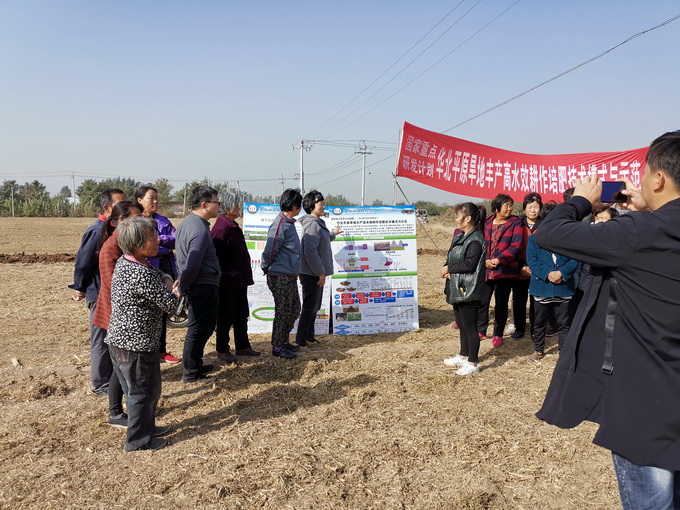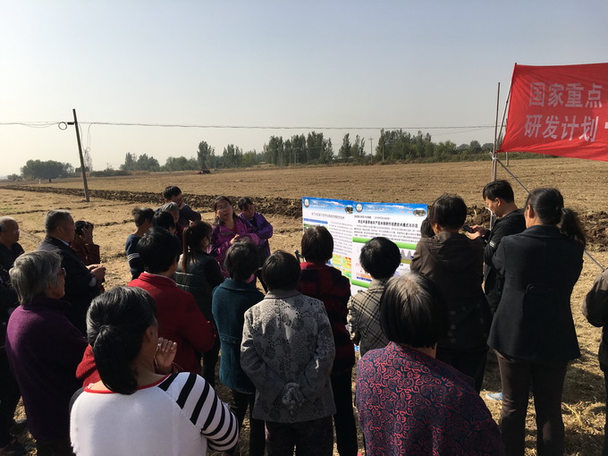 10月21日,农业资源研究中心联合河北省沧州市南皮县人民政府办公室、南皮县双庙镇王三家村村委会,在王三家村组织召开了国家重点研发计划课题“华北平原旱地丰产高水效耕作培肥技术模式与示范”(2016YFD0300808)技术观摩培训会。农业资源研究中心参与该课题研究的科研人员、南皮县政府办公室副主任刘桂强、王三家村委会成员、王三家村和李家庵粮食种植大户、专业合作社负责人和当地种植户近80余人参加了会议。