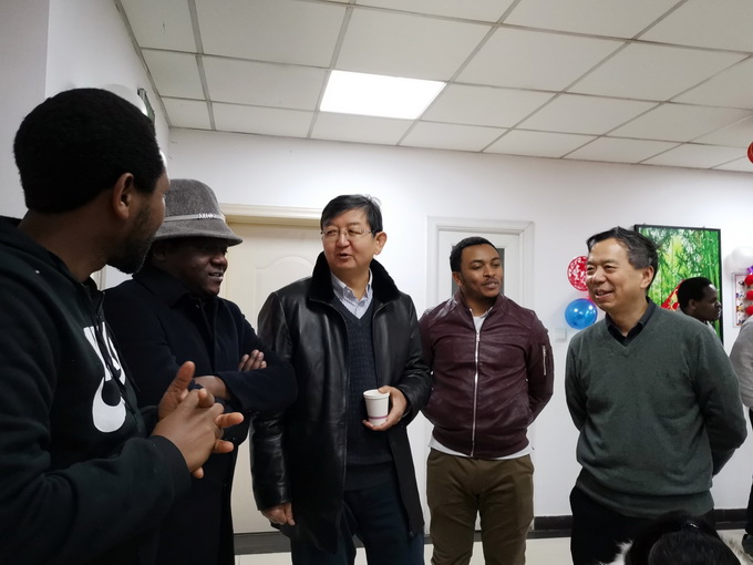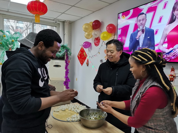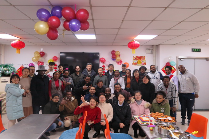 中心领导和老师对外籍学生在中心的科研和生活情况十分关心。中心主任胡春胜代表中心领导班子表达了对大家的祝福,希望大家在新的一年里健康幸福,天天开心,更上一层楼。中心副主任杨永辉、人事教育处负责人和研究生导师手把手教留学生擀面皮、包饺子,并介绍中国年的文化习俗。留学生们一边动手学习包饺子,一边同老师们分享在中心科研、生活的点滴,现场氛围温馨又热闹。热气腾腾的饺子和各国特色的美食让在场的各位大饱口福,回味无穷。来自卢旺达的同学们表演了精彩的舞蹈,更是将气氛推向了高潮。