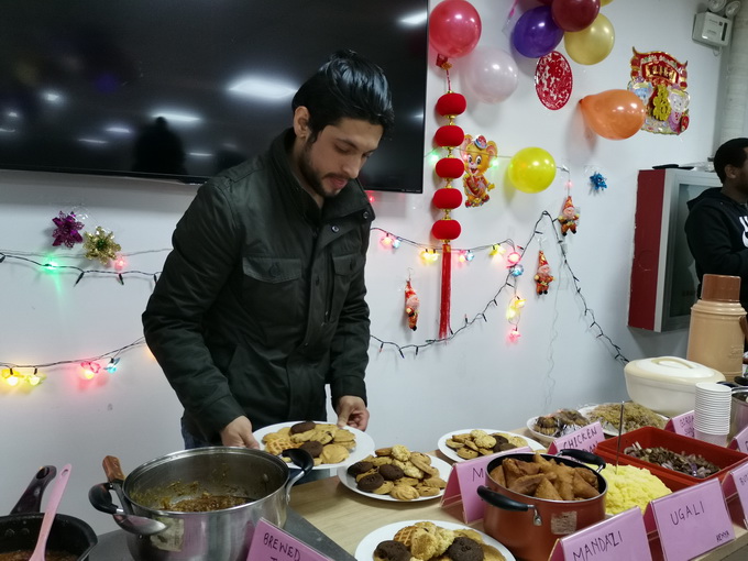 为了迎接中国传统的农历新年,丰富留学生的业余文化生活,增进国际文化交流,让留学生同学体验和感受到浓浓的中国年味,1月20日,农业资源研究中心组织全体留学生与中国学生一起贴福字、挂灯笼、包饺子,共同迎接新春的到来。来自世界各国的留学生们精心准备了自己国家的特色食物,分享自己的拿手好菜,介绍自己国家的饮食文化。
