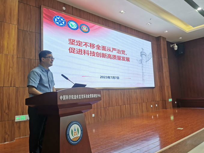7月3日,党委书记刘小京作《认真开展学习贯彻习近平新时代中国特色社会主义思想主题教育,为农业强国建设贡献创新力量》专题党课报告,从学习贯彻习近平新时代中国特色社会主义思想主题教育的重要意义与目标要求、学习习近平总书记重要讲话精神、落实党中央科技创新决策部署、大力弘扬科学家精神、落实全面从严治党决策部署等五个方面进行了系统讲解,重点围绕落实习近平总书记视察河北重要讲话重要指示精神、旱碱麦种植推广及“做好盐碱地特色农业这篇大文章”等分享了学习体会,并对推进干部队伍教育整顿工作提出具体要求。