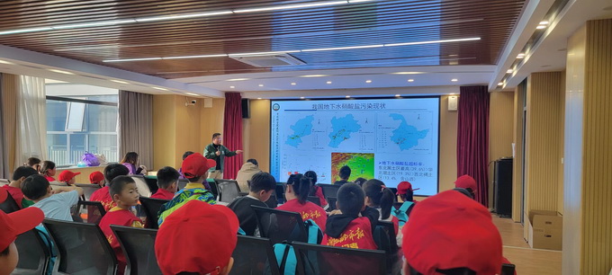中心三位青年科研人员变身科普讲师,将科学知识以通俗易懂的语言讲述给小学生们听,让他们近距离接触科学、走进科学。姜寒冰博士以《探索水的奥秘守护生命之源》为题,从为什么要强调节约用水,人们日常每天究竟需要消耗多少水,前沿科技发展将如何帮助人类守护好地球水资源三个方面,给小学生展示了水的奥秘,唤起小学生保护水资源的意识。郑文波副研究员引导小学生探究地下水硝酸盐污染的踪迹,从科学角度给学生们普及了国际卫生组织规定地下水中硝酸盐浓度超过50mg/L会危害人类健康、饮用水硝酸盐超标会引发疾病等知识,还进一步引导学生关注水污染,并就未来如何更好地保护好地下水资源与学生进行互动。“人类感到缺水时,会主动寻觅水源,植物没有大脑、手与脚,它们是否能感知水的缺乏?”赵美丞青年研究员通过互动式的引导,帮助孩子们认识、学习植物应对干旱策略以及节水生物技术。