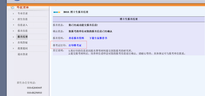 考生线上打印途径:登录博士网报系统,在“报名结果—准考证打印”页面中,下载保存后,打印准考证。