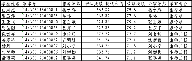 农业资源研究中心2016年硕士研究生拟录取名单(第一批)